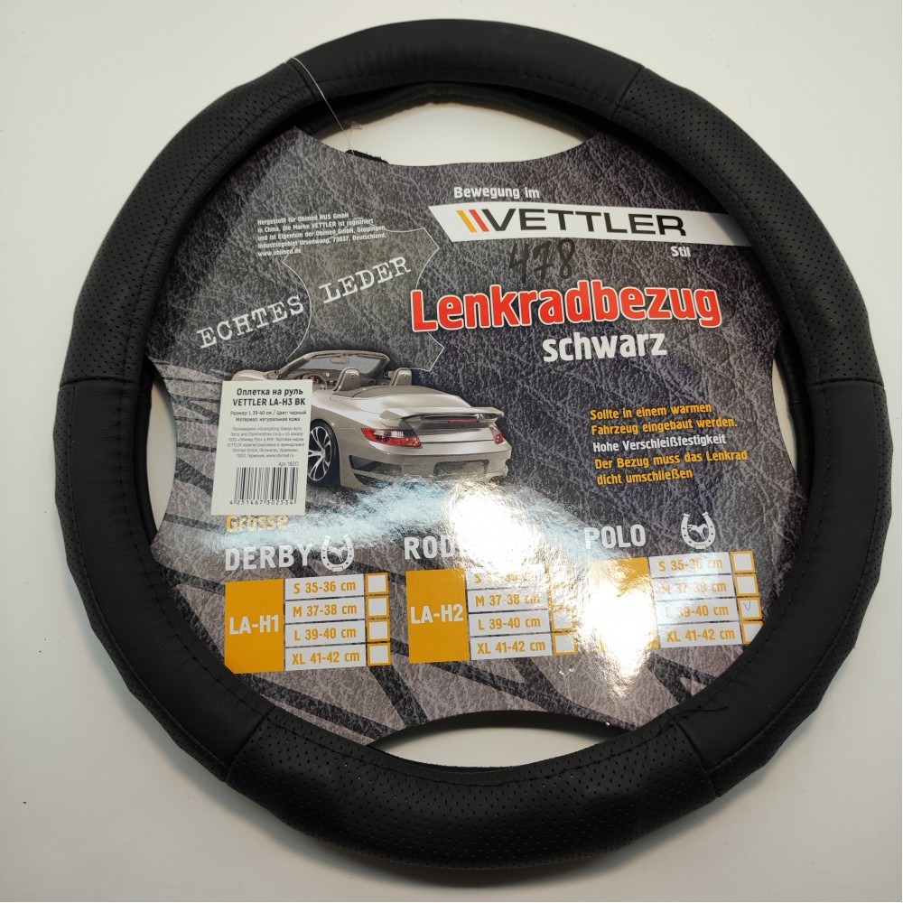 Оплетка руля (L) 39-40см Газель Бизнес, NEXT, ВАЗ-2101 Vettler Derby нат. кожа черный